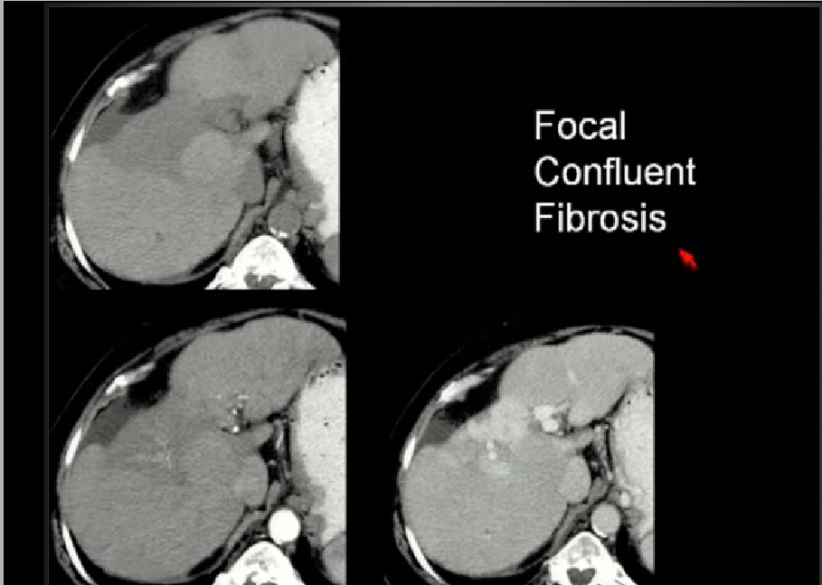 focal confluent fibrosis가 다른 fibrosis와 마찬가지로 delayed phase에서 조영증강된다.